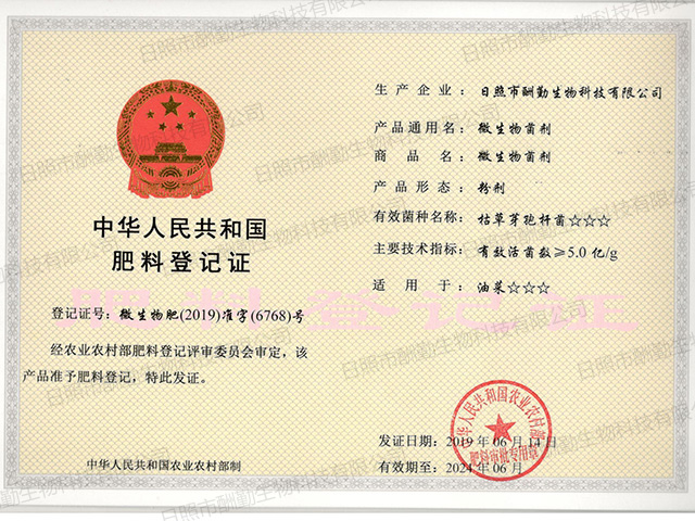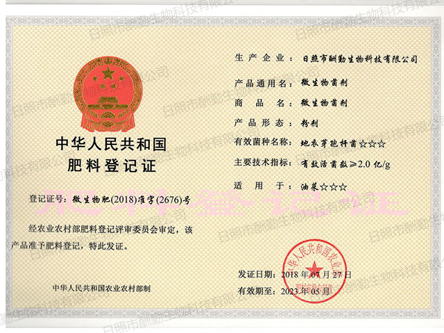 微生物菌劑肥料登記證5億